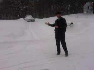 We got another snow storm Tuesday and Wednesday. After each of these storms I’ve gone out and shoveled a loop for Buddy to run in out in the front yard. It is now a serious trench. When Buddy the wonder dog goes into it, I lose sight of him. He can’t see over the edges.